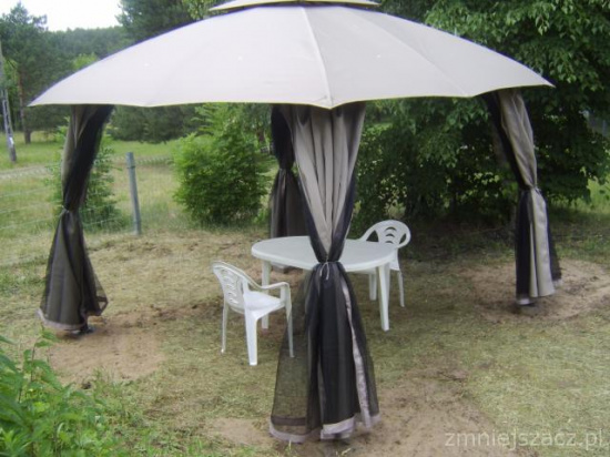 Teren naszego obiektu 1,2 ha z lasem. Do dyspozycji pawilon ogrodowy, boisko do kometki, duża huśtawka i mała dla dziecka, grill, ognisko, hamak, leżaki.